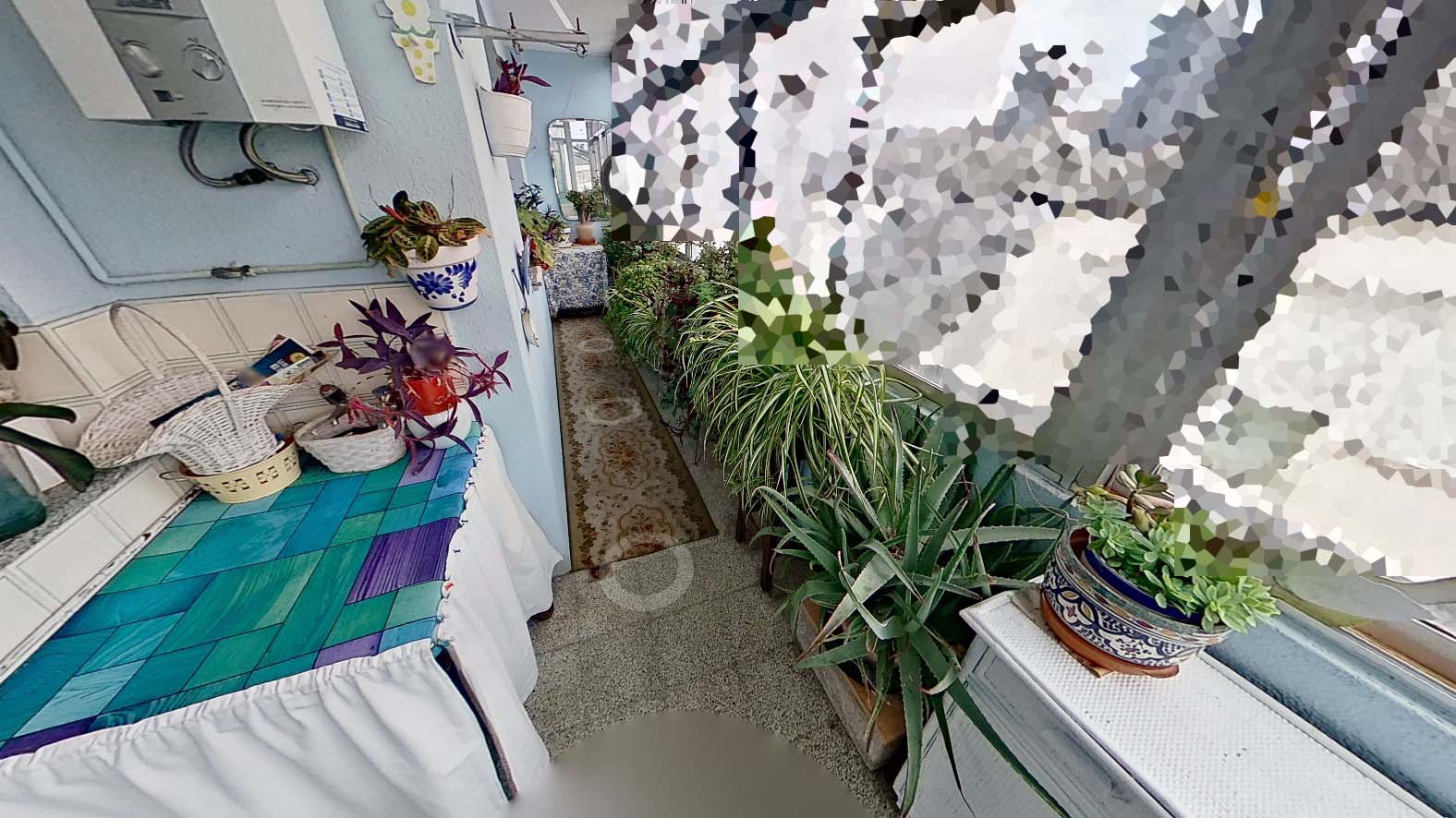 - DESCRIPCIÓN: Vivienda que consta de vestíbulo, pasillo distribuidor, salón-comedor con salida a terraza (con dos accesos, uno desde el salón y otro desde el comedor), un salón con salida a balcón y ventana, tres dormitorios (dos dobles y uno individual), un baño con plato de ducha, un baño con bañera pequeña y cocina con despensa y salida a terraza acristalada. Junto a la vivienda se transmiten una plaza de garaje y un trastero anejo.